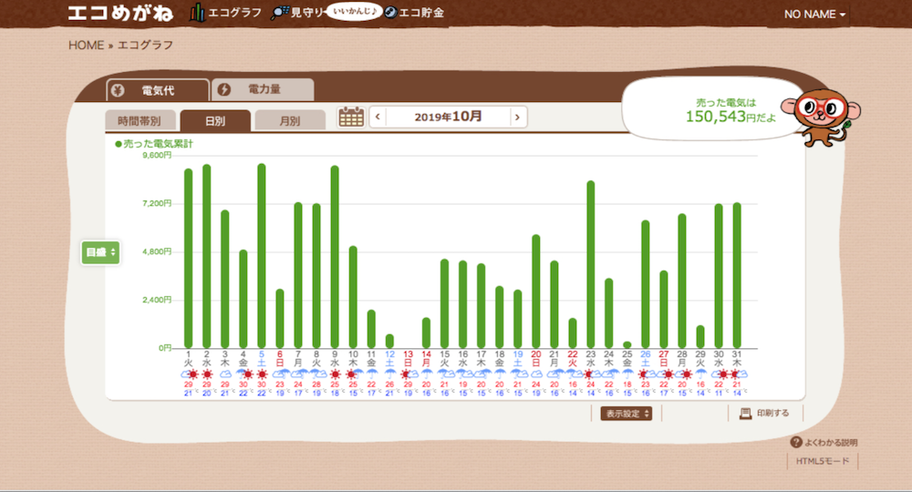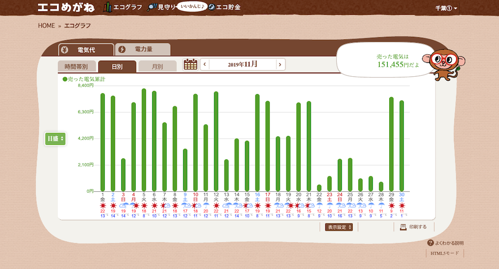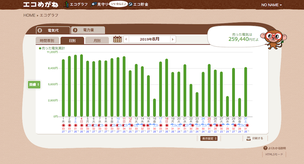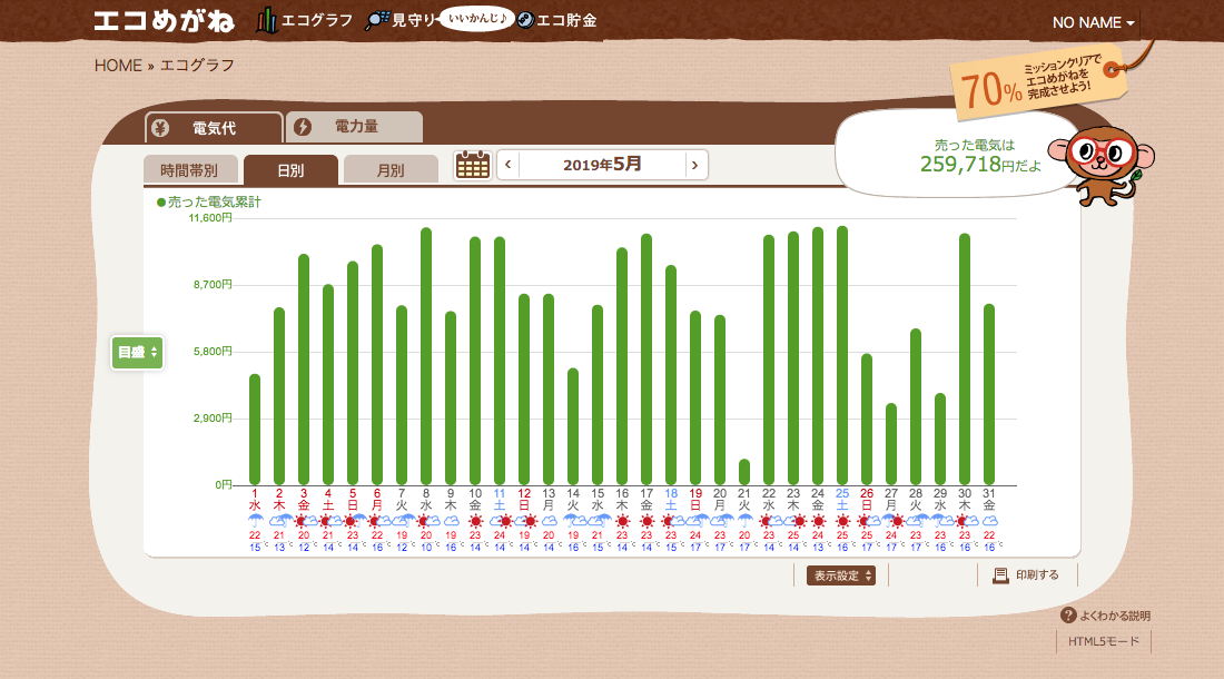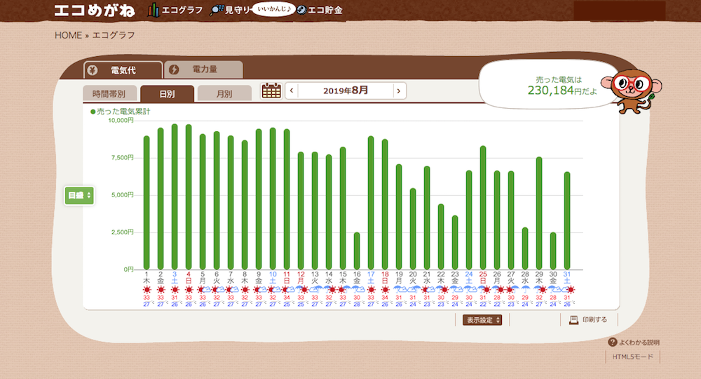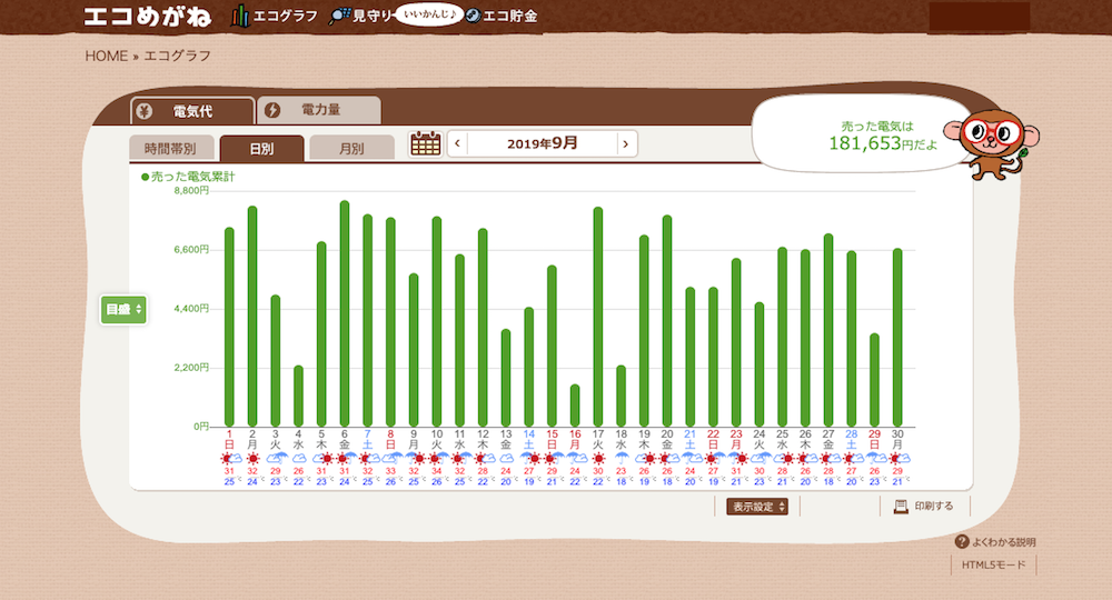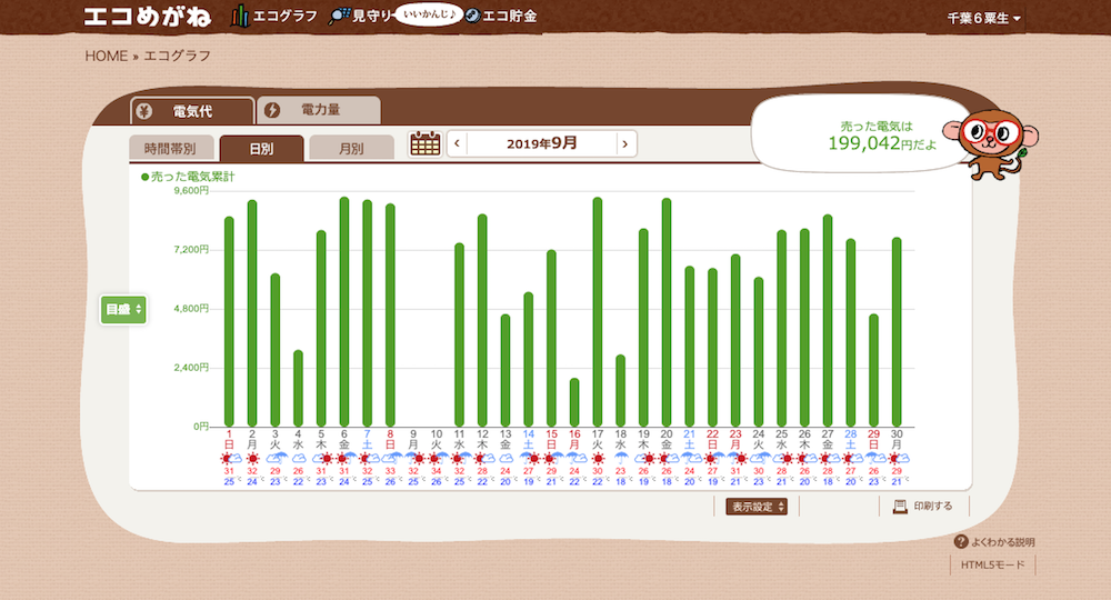 ※注意※2019年6月の売電実績に関しましては、エコめがねのトラブルにより10〜30%の未集計期間がありました。
