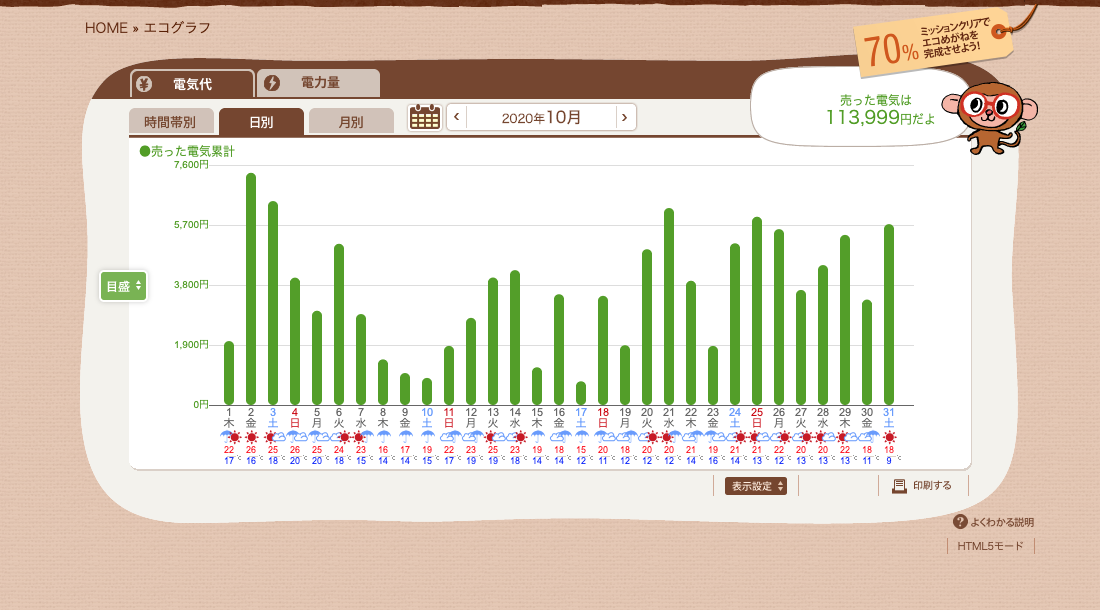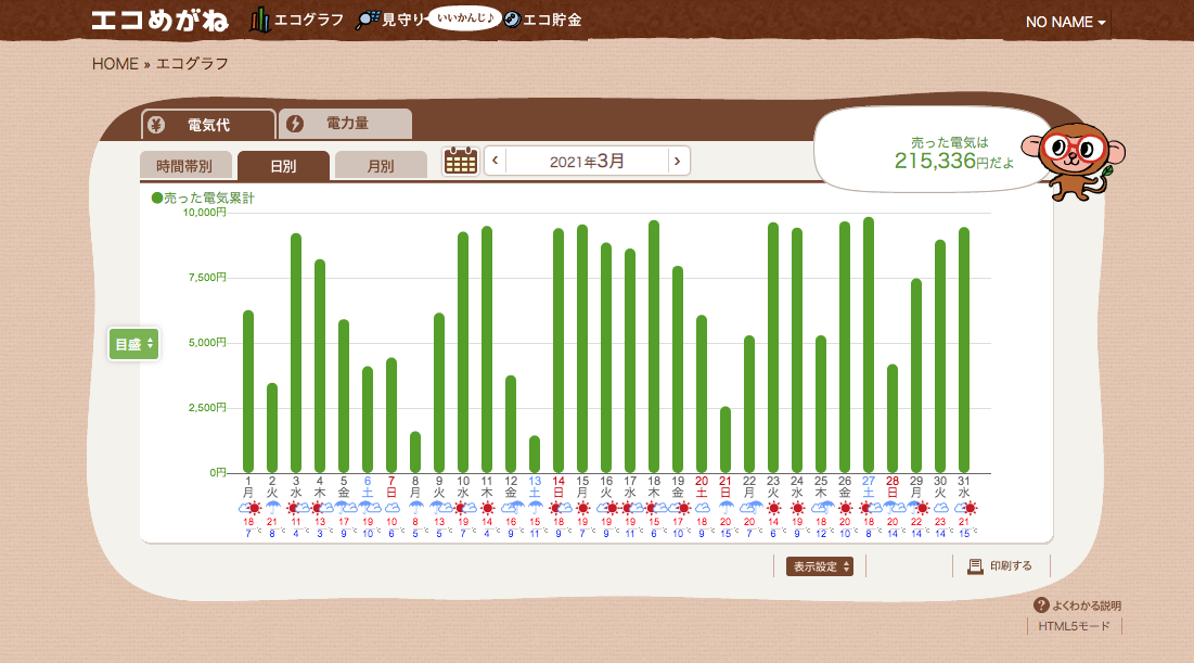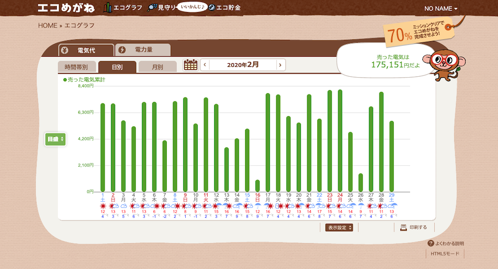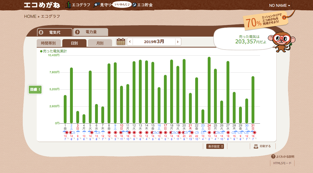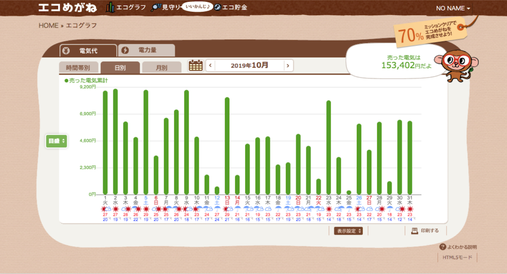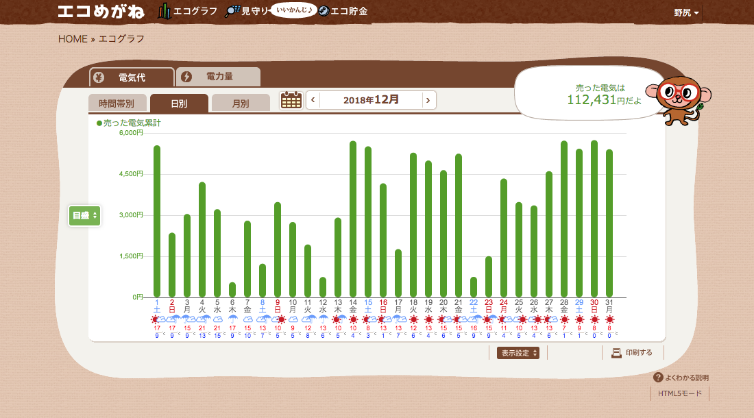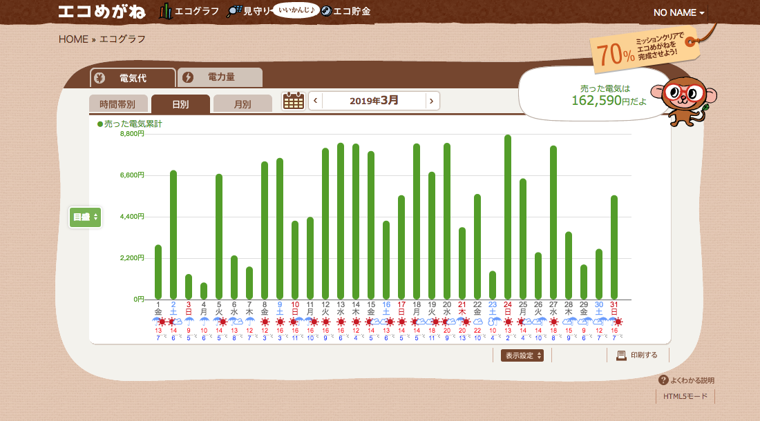 ※注意※2019年6月の売電実績に関しましては、エコめがねのトラブルにより10〜30%の未集計期間がありました。